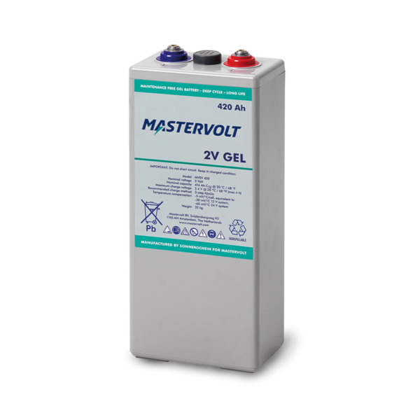 Dòng traction battery 2V của Mastervolt có dung lượng lên đến 2700 Ah, và có thể ghép nối 6 hoặc 12 bình để tạo hệ điện 12V hoặc 24V theo đúng yêu cầu tải. Cáp kết nối đã bao gồm trong bộ sản phẩm (khách hàng chỉ cần chọn chiều dài mong muốn khi đặt hàng).